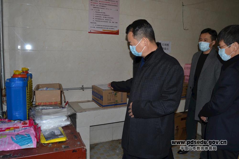 (检查组查看物资储备情况)
