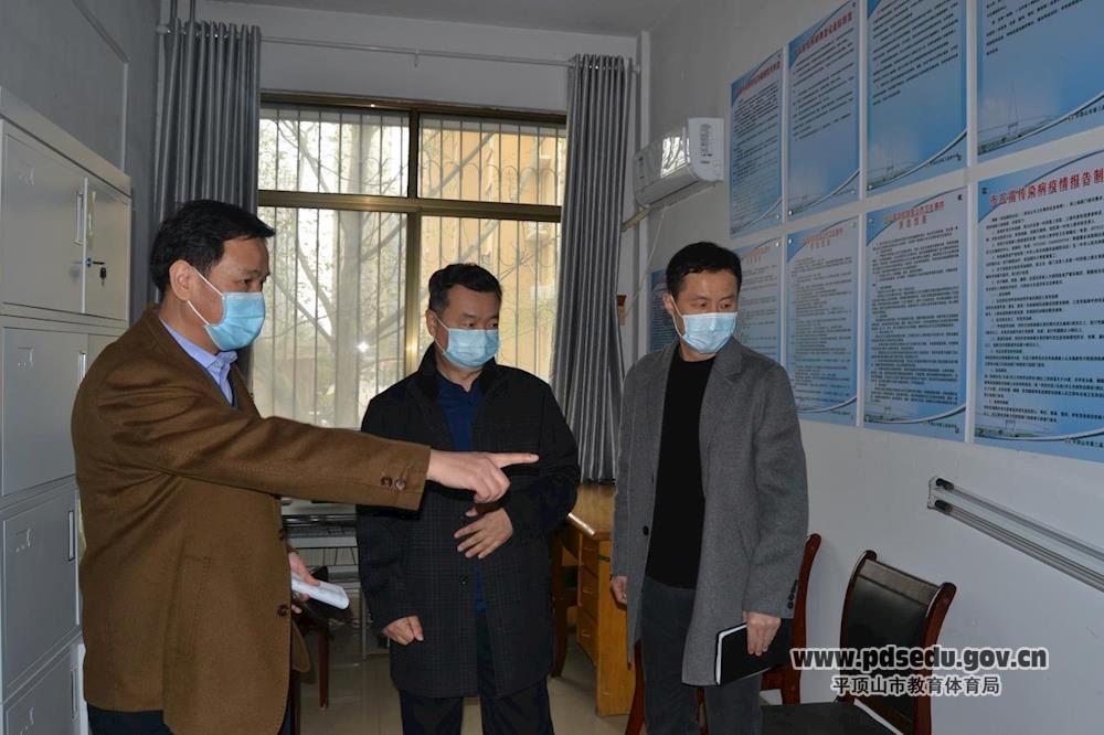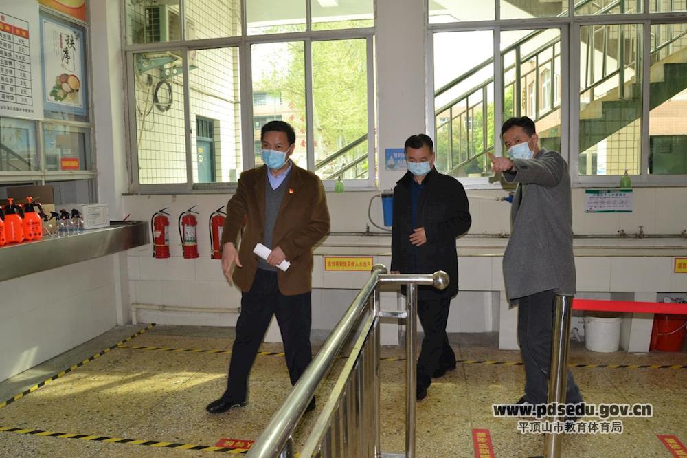 张建岭围绕开学“九到位”要求对复学的各项工作做详细汇报,检查组对学校安全、食堂、防疫物资等档案材料详细查阅并提出指导意见。随后,检查组到隔离室、防疫物资储备室、食堂、门卫处检查,详细了解学校防疫物资的准备情况、校园防控制度以及遇突发事件的应急处置方案。检查组对学校的工作表示肯定,指出一定要科学细致做好防控,不断调整完善复学工作,针对体温检测、清洁消杀、物资保障、应急处置等重要环节,以更细致的措施堵塞漏洞,确保开学万无一失。