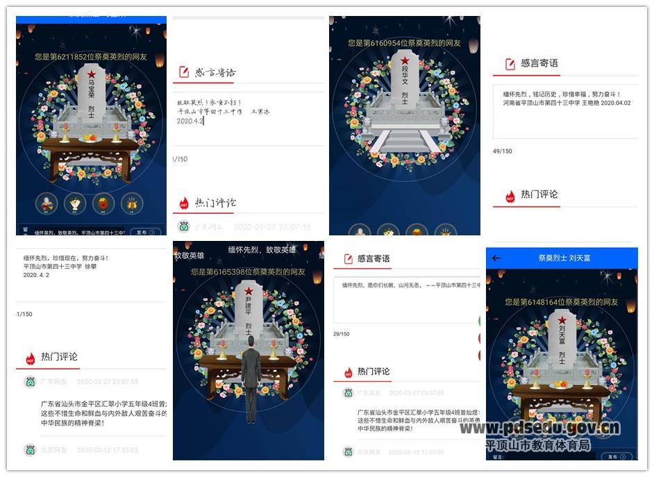 活动中,四十三中全体教职工及学生在家长共同参与下,利用手机、电脑等工具开展网上祭英烈活动。大家以中华英烈网为主要平台,怀着无比崇敬的心情,选择鲜花寄语,向革命先烈敬献花圈,在手指间表达对英烈敬仰缅怀之情。