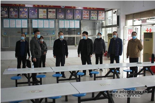 在林亚南的陪同下,尹卫东一行到学校食堂、隔离观察室进行了实地考察。在食堂,林亚南向尹卫东汇报了学校食堂管理制度、错峰就餐方案,保证就餐学生一人一桌,保持足够的间距,确保学生就餐安全。在隔离观察室,林亚南向尹卫东介绍了隔离观察室位置的设置、物资的配备、人员的培训及学校疫情应急演练方案。