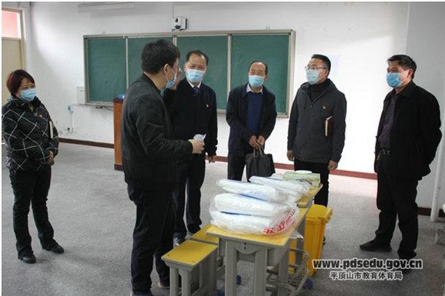 4月1日上午,市教育体育局党组成员、副局长尹卫东携市基础教育科科长薛建军、市督导室主任樊宏超到八中对高三年级是否具备开学条件进行调研。