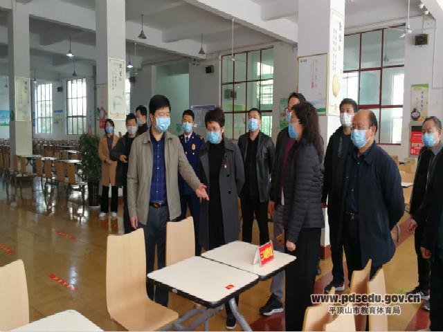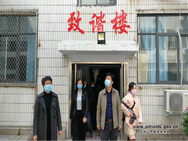 4月4日上午,新华区区委常委区长陈晓、区委常委宣传部长姬翠红、副区长王世杰携区消防、食药监、教体局等相关部门调研指导市实验高中疫情防控及高三开学准备工作。校长贾晓燕及班子成员陪同调研。