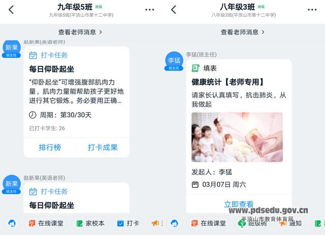 二、强化学生管理,养成良好的学习和生活习惯。各班通过钉钉、微信小程序进行打卡,督促学生合理作息;网课开始后,各班班主任老师每天统计并反馈学生听课和提交作业情况,让学生养成认真上课、按时巩固的好习惯。同时利用周总结和线上考试成绩分析,选树班级先进典型,为学生们树立学习榜样。学校鼓励学生坚持锻炼,在做好防护的同时,采用合适形式坚持体育锻炼,保持身心健康。