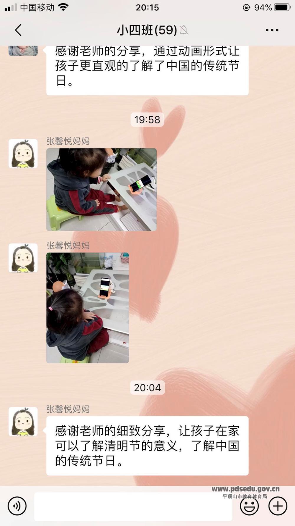 活动中,小班老师根据幼儿的年龄特点,通过视频、图片、谈话、故事等形式,帮助幼儿了解清明节的来历;通过朗诵清明节诗歌,向幼儿介绍了在清明节开展的踏青、春游、放风筝、扫墓、植树等传统活动;通过观看相关视频、图片了解革命先烈的英雄故事,增强了幼儿对民族文化的了解,激发他们的民族自豪感;通过开展实践活动,让幼儿切身感受清明节踏青等习俗。