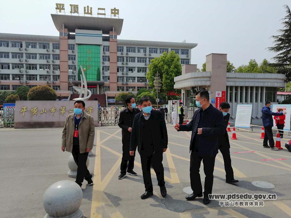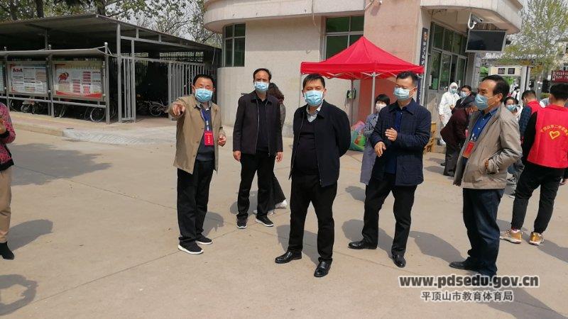 4月7日上午,湛河区区委书记柳波,区委常委、办公室主任宋本旺,区委常委、宣传部长孙宝印一行到市二中检查指导高三学生复学复课工作。