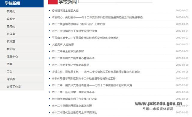 疫情期间,市十二中把灾难当教材,加强网络管理,在教体局和学校的坚强领导下,恪尽职守,为打赢疫情防控阻击战贡献自己的一份力量。