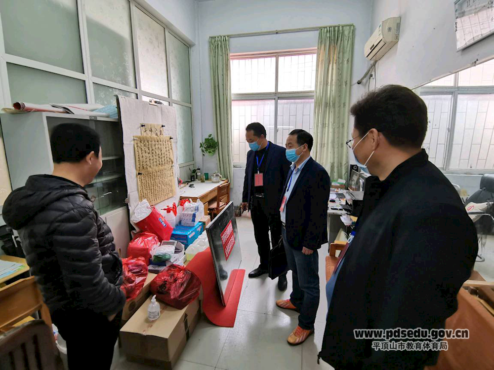 鲁建杰一行在接受体温检测并例行登记手续后进入校园。实地查看了校门口体温检测通道、教室、隔离室、观察室和防疫物资存放室等场所;详细了解了学校防控制度落实、应急物资筹备、环境卫生消毒等情况。