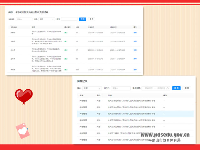 首先,党支部书记赵惠芳在党员群,学习传达了市教育体育局党委关于《平顶山市2020年全民国家安全教育日宣传教育活动方案》精神,动员全体党员认真学习《国家安全法》、《反恐怖主义法》、《反间谍法》等相关法律法规,广泛宣传安全知识,并开展 “全民国家安全知识竞答”活动。接着,党支部创新知识竞答模式,鼓励全体党员积极运用现代化信息手段,以钉钉为平台,通过“雨课堂”进行在线答题。全体党员积极主动参与,短短时间内完成答题且成绩均在95分以上,切实增强党员安全防范意识和国家安全意识。