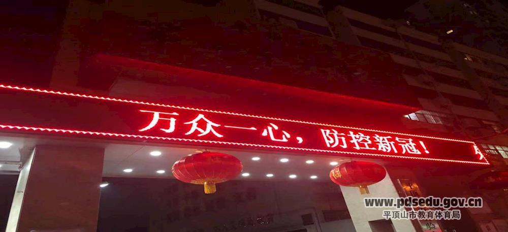利用校园电子屏等设备,全天不间断滚动播放防控宣传标语。
