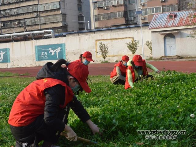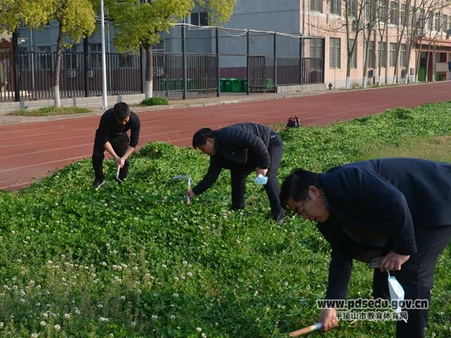 草长莺飞四月天,无边光景竞芳颜。4月11日下午,阳光明媚,春风和煦,市一高党员志愿者在校领导班子的带领下在校运动场的草坪上开展义务除草暨“爱国卫生月”活动。