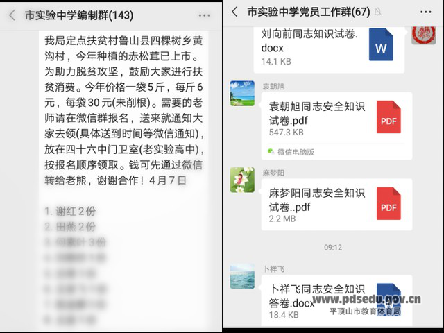 实验中学党务工作方面,党员们积极踊跃参与党务话动,积极参加线上扶贫活动。