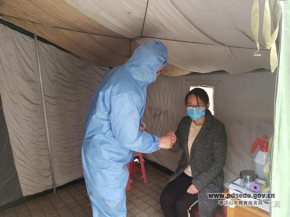 与以往不同的是,市二高校园内多了几道白衣身影,他们就是平煤神马集团总医院派驻医生周君、郝申申、关豪和市二高校医苏慧。几位白衣卫士24小时坚守岗位,守护师生的身体健康和生命安全。