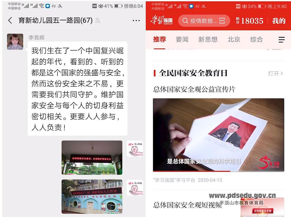 市育新幼儿园通过微信要求家长和孩子一起观看安全教育平台上的《2020全国中小学生国家安全教育专题活动》视频,7分钟的短视频通过具体生动的案例告诉孩子维护国家安全,从保护自己开始,作为小朋友,遇到危险时,怎样保护自己。