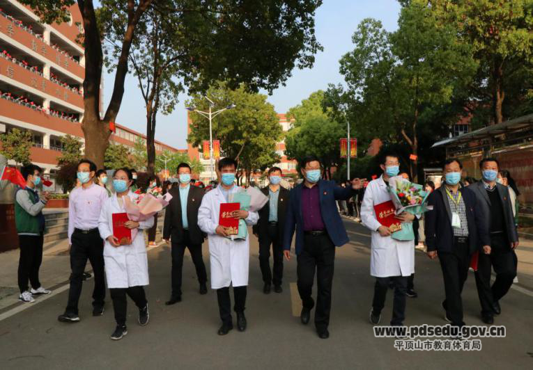 4月19日下午,市四中举行隆重的欢送仪式,所有在校的师生员工怀着不舍和祝福,送别高三返校复学以来驻校从事防疫工作和医疗服务工作的医生们。