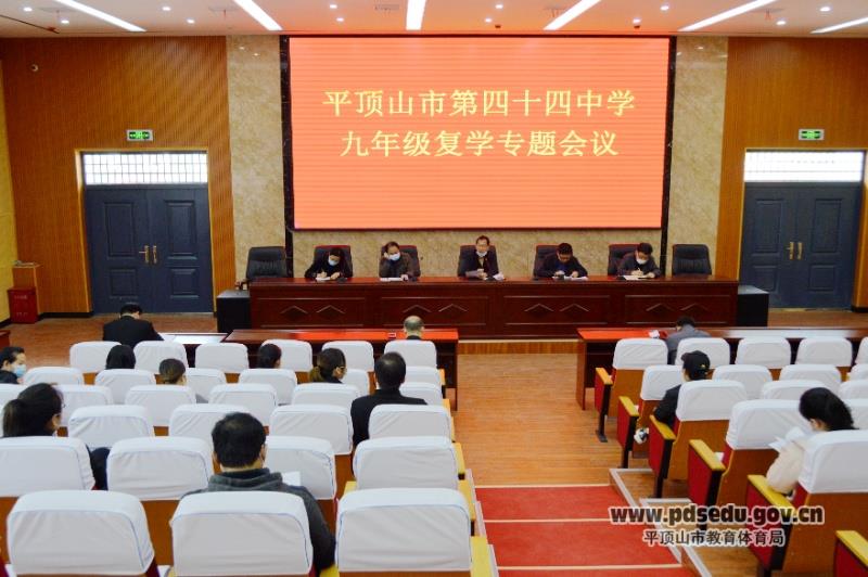 4月20日上午,市四十四中召开九年级复学专题会议,就春季复学工作进行专题研究和进一步安排部署。学校校长张宏伟主持会议,学校领导班子成员及相关科室负责人及九年级教师参加。