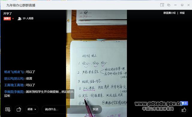 4月19日十二中九年级部再次召开年级教师视频会,对各学科做好线上线下教学工作的衔接提出具体要求,对开学前的各项准备工作做了周密的安排和布署。