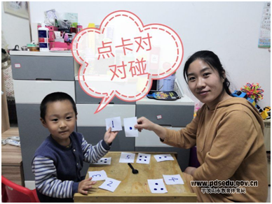 首先,幼儿园孙晓琴名师工作室成员周佩佩老师根据幼儿年龄特点和认知水平,从数学领域出发设计出亲子游戏方案,然后利用视频剪辑软件制作出短小有趣的微视频:小班亲子游戏《点卡对对碰》、中班亲子游戏《大鱼吃小鱼》、大班亲子游戏《快乐1+1》。然后,通过公众号和钉钉平台推送给家长,让忙碌一天的家长在轻松愉悦的氛围中,与孩子一起互动学习。
