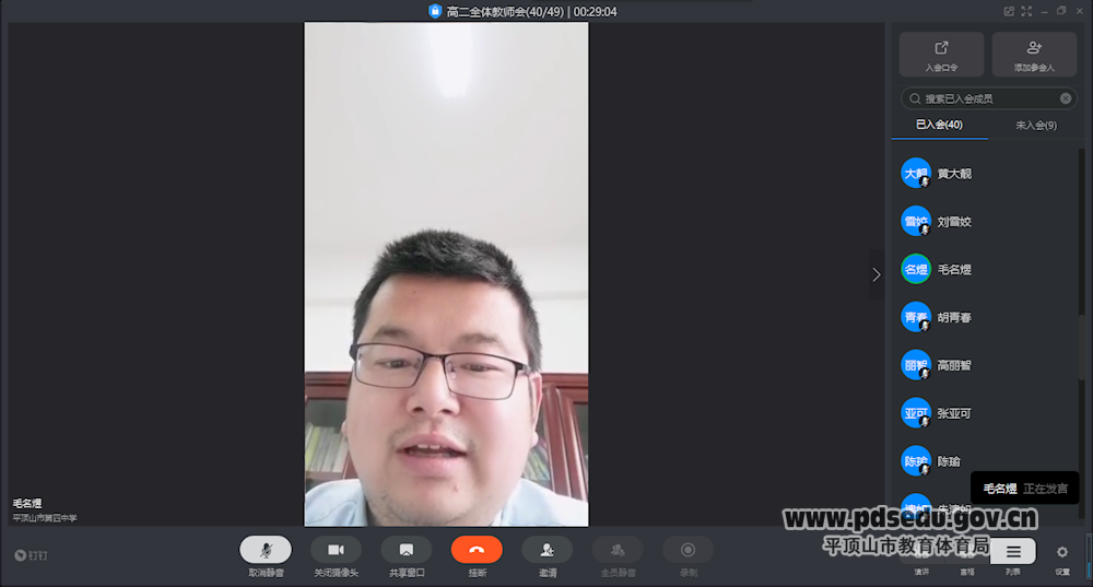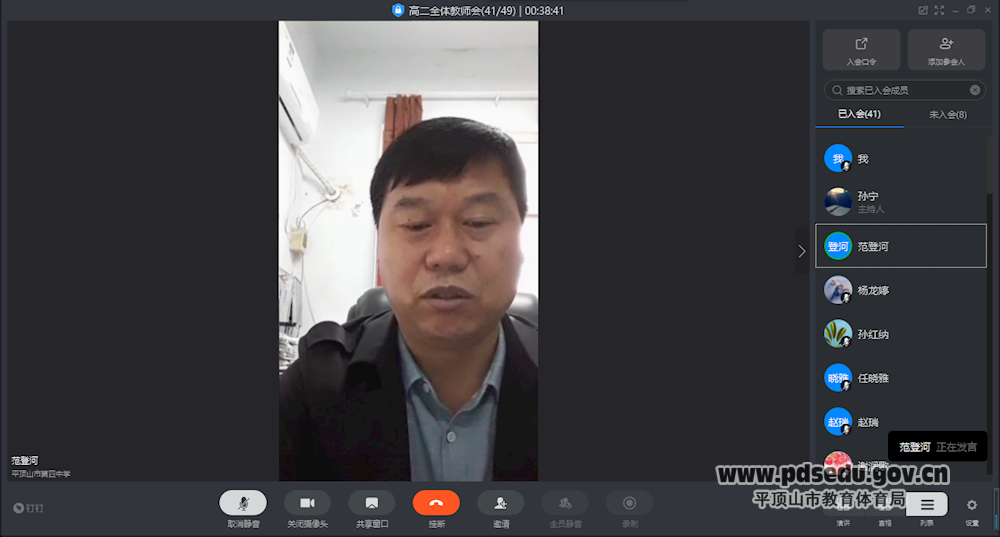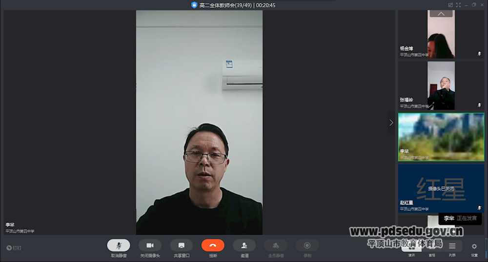 4月18日下午,市四中高二年级召开了线上教学总结暨疫情防控视频会议,副校长范登河、副校长毛名煜、教务处主任李芈以及高二全体教师参加了此次会议。会议由高二年级主任韩红主持。