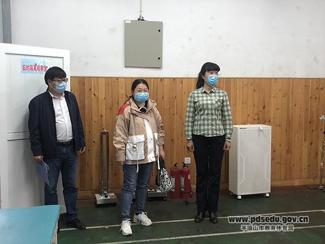 检查组领导一行到达学校门口后,主动进行体温测量,登记后,详细了解教职工值守、学校疫情物资储备室、校内隔离点的设置情况和教室布置情况,重点围绕“九个到位”进行细致检查和实地考察,对防控物资储备及存放、消防设施设备、用水用电安全等各项开学前准备工作落实情况进行了逐一排查,详细询问学校目前线上教学开展情况和各项防疫措施落实情况,现场听取了学校关于疫情防控和复学工作的情况汇报。