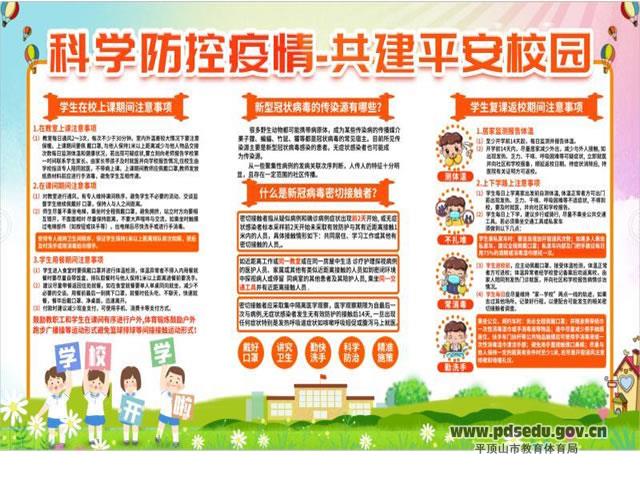 学校扎实落实市教体局的返校复学第一天深入开展疫情防控教育的要求,积极开展师生新冠肺炎疫情防控健康教育,在校园醒目位置张贴疫情防控宣传知识,普及疫情防治知识和防控要求,提高师生自我防控意识和能力,引导广大师生把灾难当教材、把困难当磨砺,理性认识疫情,加强个人卫生,科学做好防控。