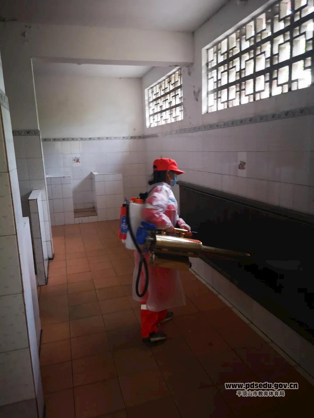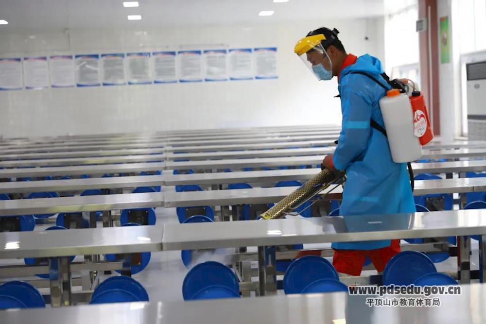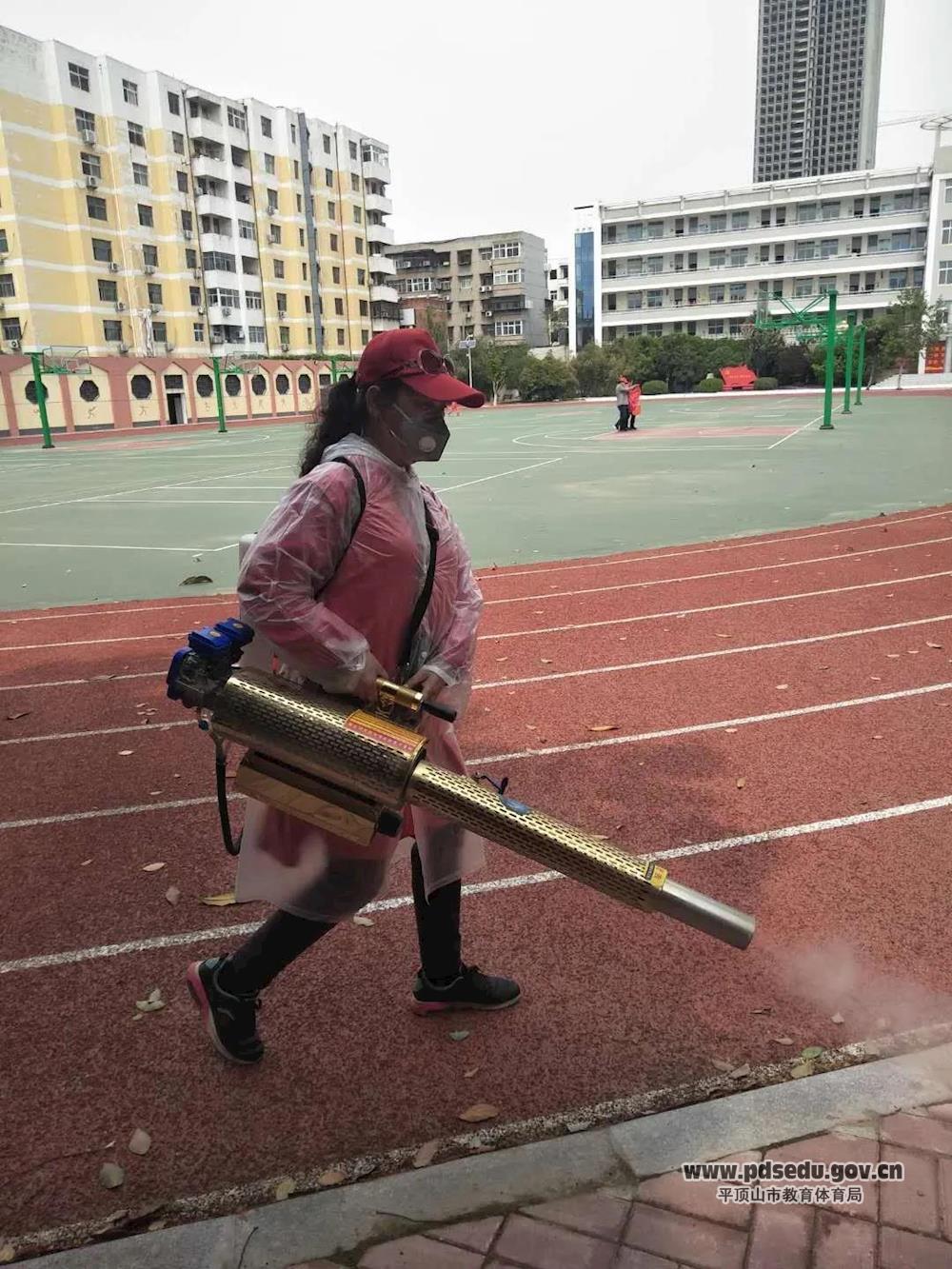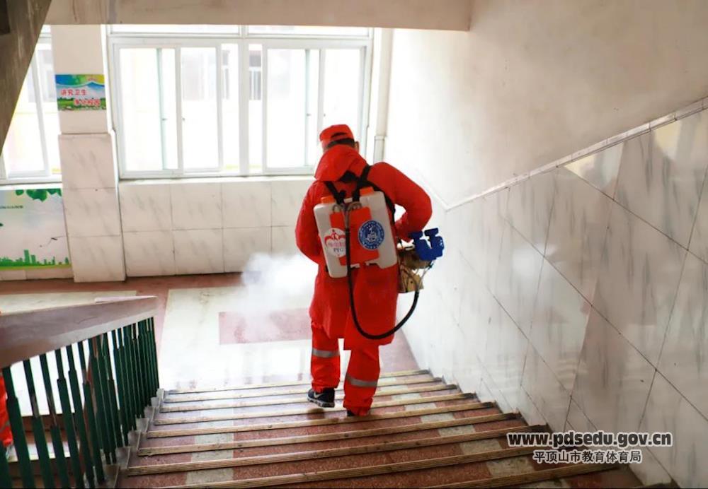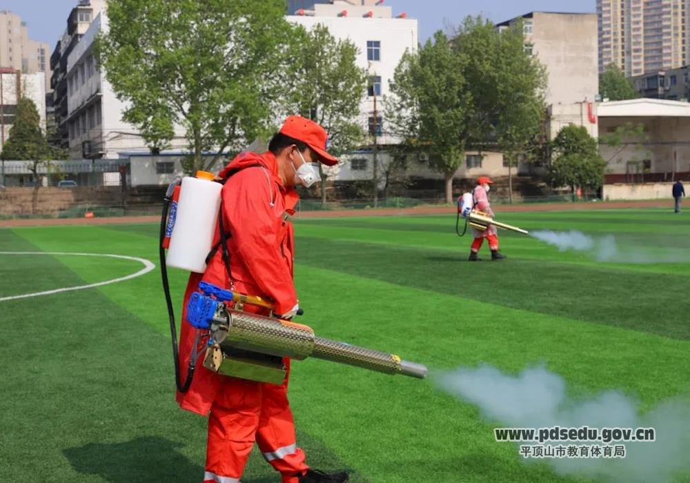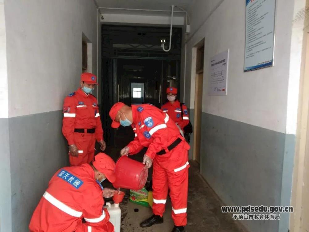 在消杀过程中,市义工联蓝天救援队队员们身背50斤重的专业消毒设备穿梭在校园各处,严格按照规范要求对学校教室、宿舍、餐厅、隔离室、观察室、会议室、走廊、体育馆、卫生间、操场等区域进行全方位地毯式喷洒消毒,不留任何死角,全力营造安全卫生的校园环境。