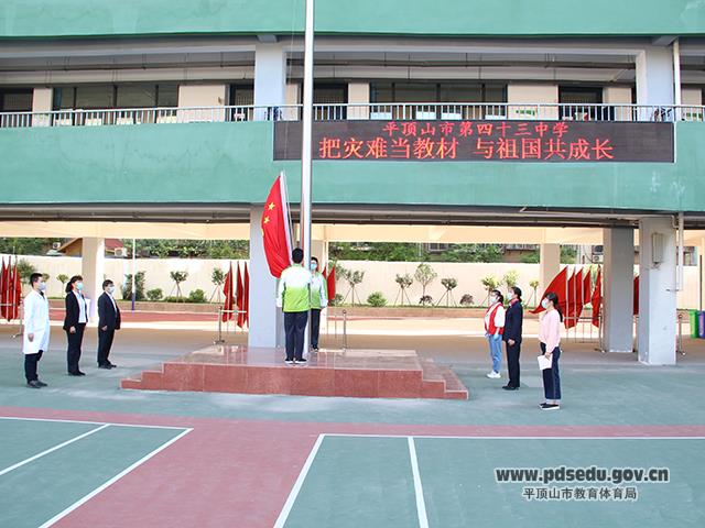 开学第一天,四十三中进行了特殊的升旗仪式,各班师生在教室里起立、高唱国歌、向国旗敬礼!四十三中党支部书记、校长马艳丽在致辞中讲到:“同学们,读书不觉已春深,一寸光阴一寸金。2020年注定是不平凡的一年。在这场“战疫”中,我们和你们一样,为无数“逆行者”的英雄之举而热泪盈眶,为举国上下勠力同心而心潮澎湃。在这个别样的春天,我们经历了前所未有的焦灼与挑战,却从未停滞过坚定求学的脚步和对美好未来的期盼。万木争春季,千帆竞发时。同学们,在人生最好的年华,请保有斗志昂扬的心态;在充满挑战的时代,请秉持日新为道的信念;在富强至美的盛世,请坚守美好世界的情怀。祝愿所有的老师、同学们,新学期精神焕发,一切顺利!”