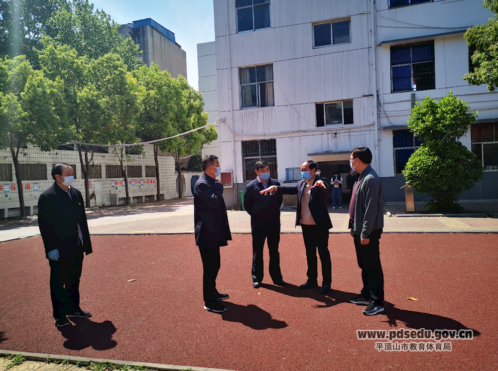 4月24日上午,卫东区区委书记王迎波、卫东区副区长李哲、卫东区教体局局长李辉一行四人对市十六中开学复课工作进行检查指导。