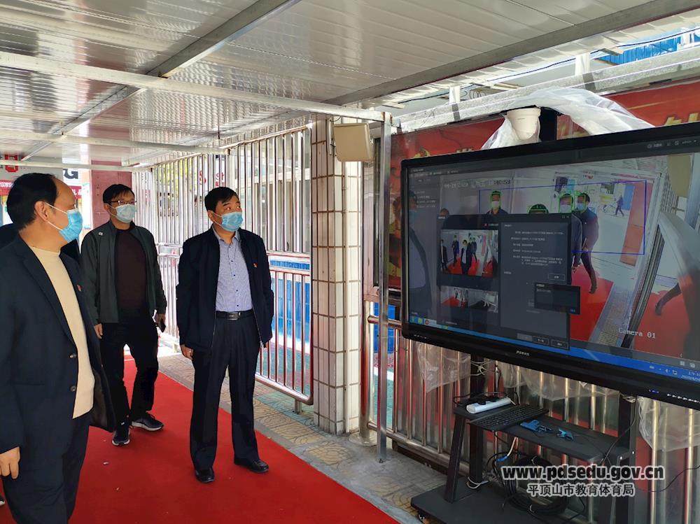 检查组一行实地查看学校门岗、教室等学生活动重点场所的消毒检测设施,亲自体验了智慧校园平台人脸识别和体温监测情况,并认真听取了学校开学预案制定、应急情况处置流程、物资保障、人员到位等准备情况。