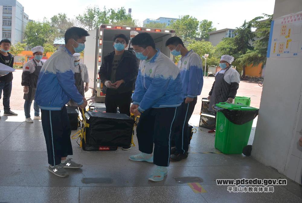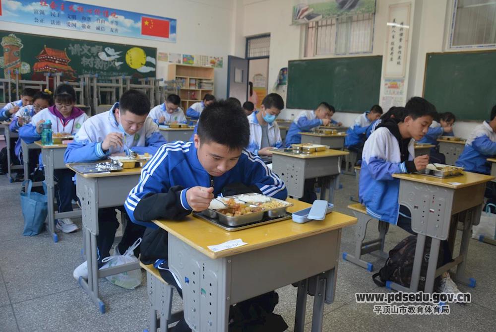 12点,按照广播提示,班级错峰取餐。听到广播后,每班8位同学有序下楼排队抬饭盒,中午就餐时,没有人喧闹,安安静静的就餐。景艳伟深入到初三各个班级询问学生饭菜质量,叮嘱学生饭前一定要洗手消毒,注意个人卫生。