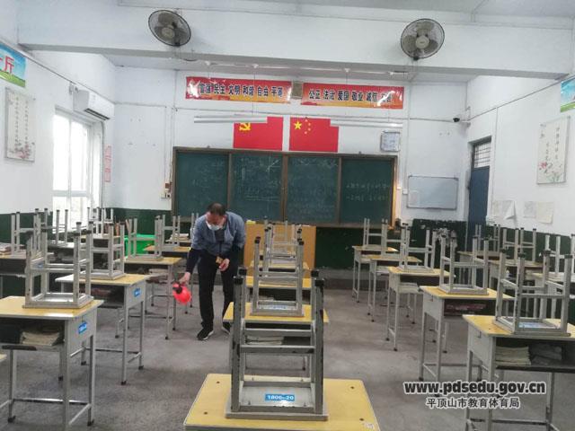 中午,各班级错峰就餐,秩序井然,副校长杨海涛陪餐,校长孙新志、值班人员和各位班主任负责维持就餐秩序。午饭后,同学们在本班教室安静午休和午自习,年级值班人员、各班任课老师按时到位。后勤人员在校园各个角落及餐厅进行消杀工作。