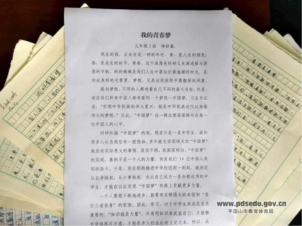“历史的接力棒只有代代相传,才能生生不息。” 为了纪念“五四运动”一百零一周年,重温《习近平总书记在纪念五四运动100周年大会上的重要讲话》,学习“越是艰险越向前的大无畏革命精神”,市四十中学在全校范围内开展“我的青春梦”主题征文比赛活动。