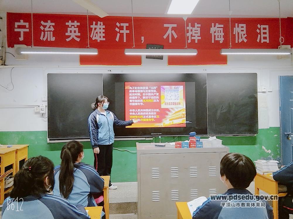 在五四爱国运动101周年到来之际,市十六中团组织共青团员同上一堂“弘扬五四精神·奉献火热青春”主题团课。