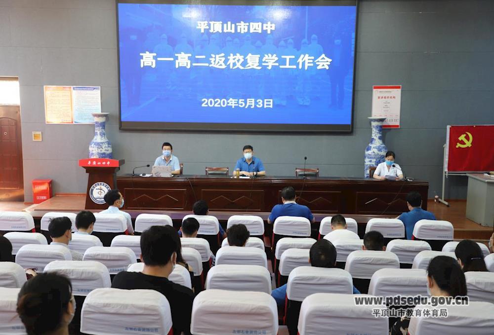 按照市教体局工作安排,全市高一高二学生将于5月8日返校复学。为确保开学工作安全、顺利、圆满,5月3日上午,市四中在校讲座厅召开高一高二返校复学工作会,对返校复学工作进行安排部署。校班子成员、全体行政人员和高一高二全体教师参加会议。