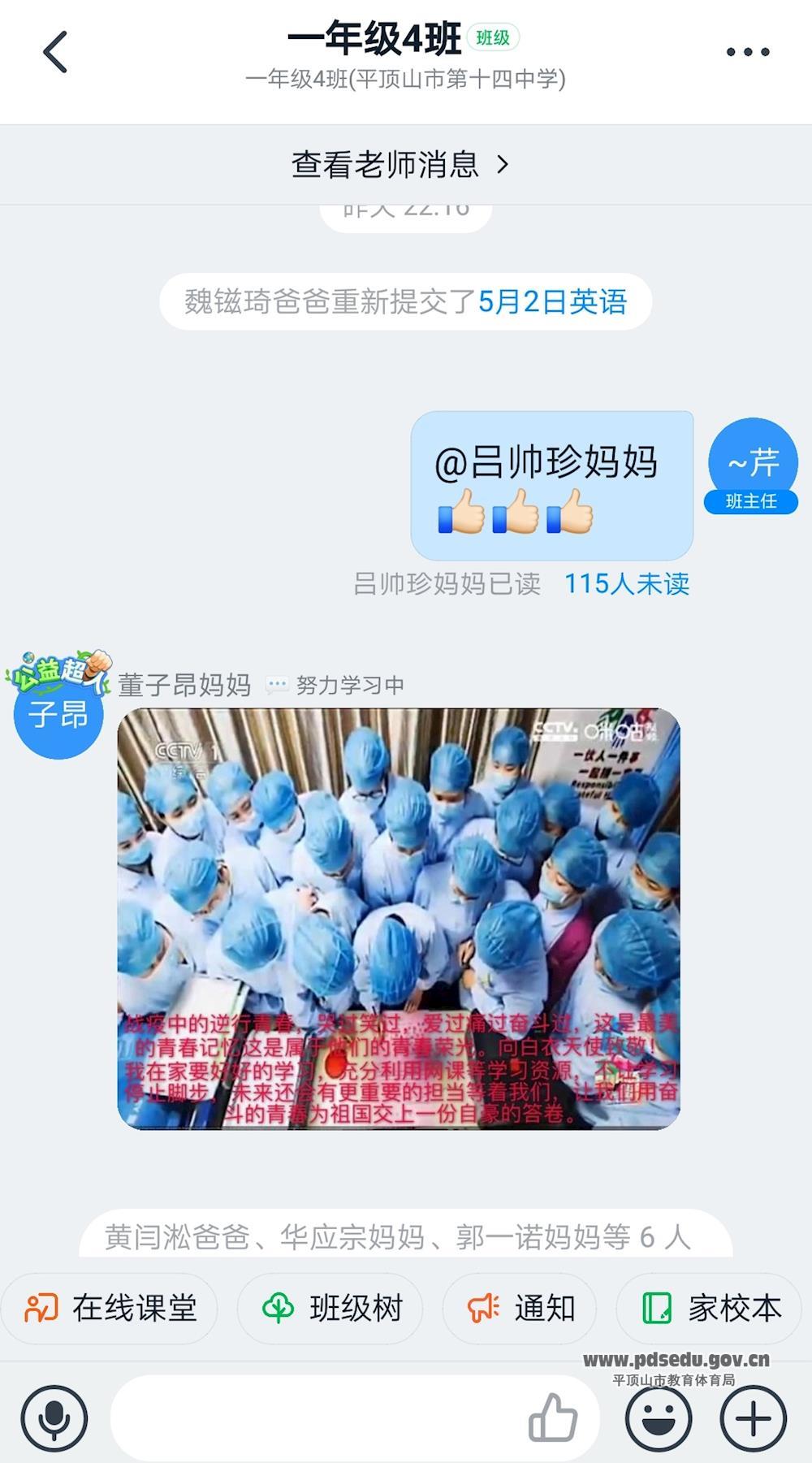 学生观看直播后在班级群内展开热烈讨论