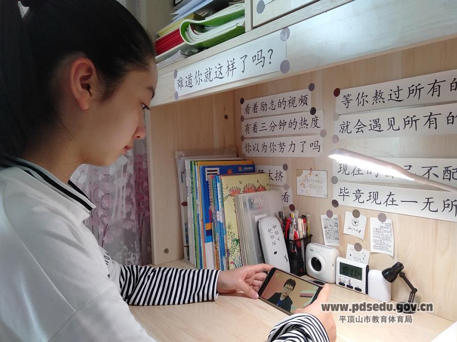 十四中七1班李佳怡在家中观看团课网络直播