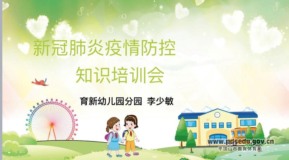 为积极做好新型冠状病毒肺炎防控工作,提高全体教职工自我防护能力及疫情防控专业化水平,保障全体教职工的生命安全和身体健康,5月5日,市育新幼儿园通过钉钉对全体教职工进行了新冠肺炎疫情防控防护知识培训。