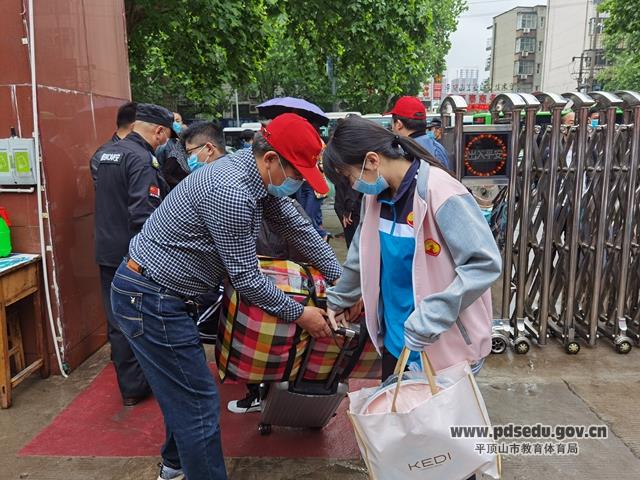 历经三个多月的居家线上学习,同学们怀着无比期待的心情、带着沉甸甸的行李终于重返校园。虽然最近两天的阴雨天气对于学生返校来说不太给力,但是一回到学校同学们瞬间感受到来自市一高大家庭的温暖和贴心:手推车、运货车等搬运行李的工具一应俱全,等候着大家到来;亲爱的老师们在学校门口、公寓门口乐此不疲的帮同学们搬运行李,还不忘反复叮嘱着“老师们帮你们,自己的事情也要学会自己去做”。风雨中,雨水、汗水交织在一起,志愿者们撸起袖子、擦拭额头,继续坚守岗位。