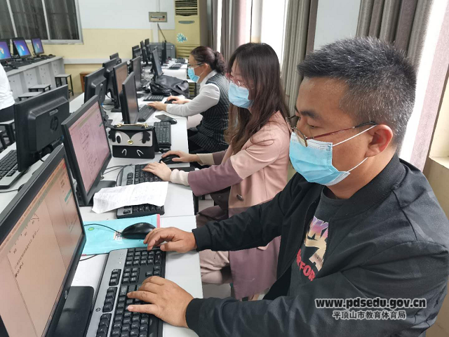 阅卷老师们在微机室集中阅卷