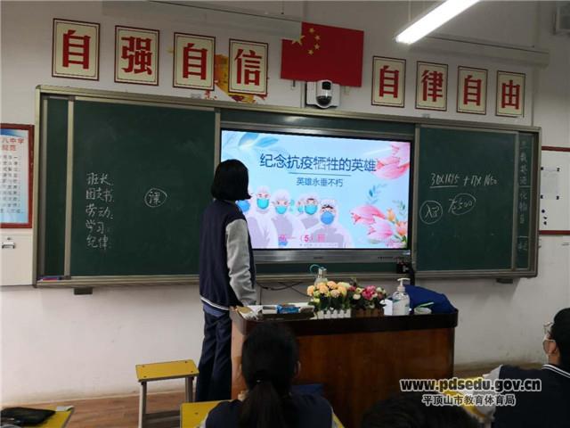 学习抗疫英雄,强化爱国教育。政教处和班主任事先准备了钟南山、李兰娟等抗疫先锋的英雄事迹,采用读报道、讲故事等形式进行宣讲,让同学们知道谁是最可爱的人,谁值得我们学习,在学生的心田撒播真善美的种子,帮助青年学生扣好人生第一粒扣子。通过对英雄的学习,进行爱国主义、革命英雄主义的正面教育。