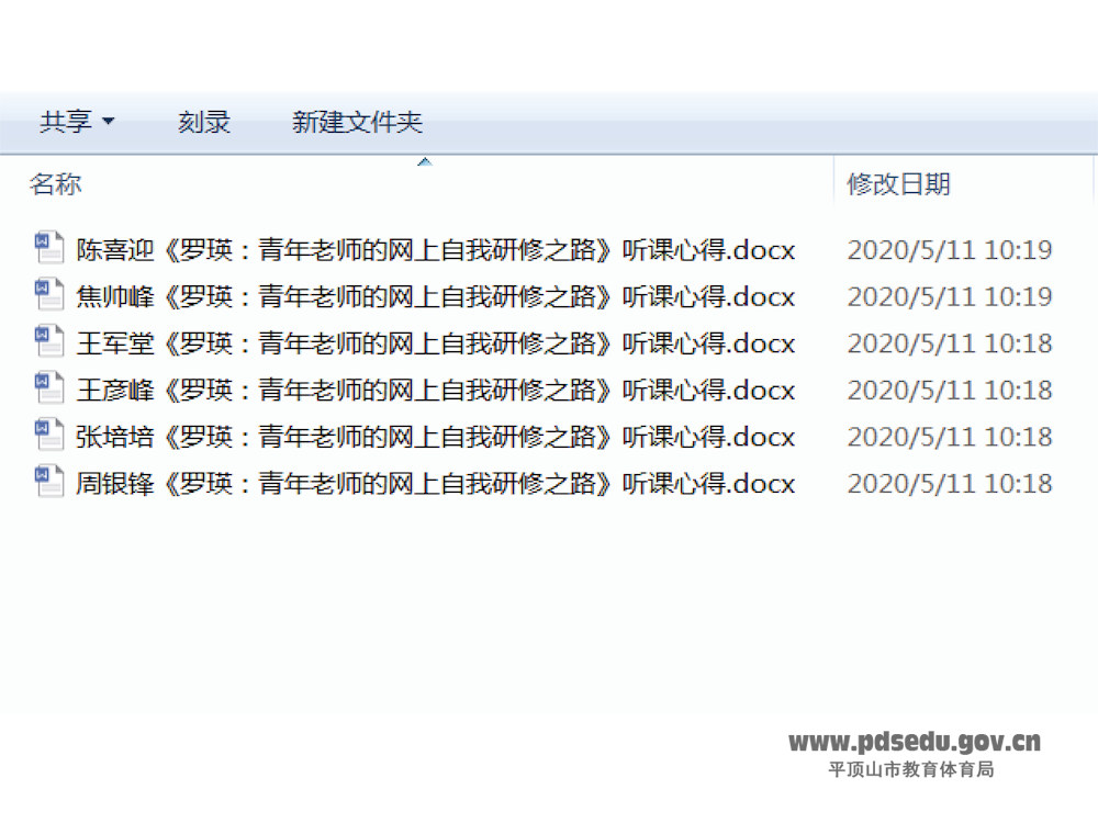 张芳名师工作室第六批市骨干教师培养对象认真观看了全国知名地理学科教师、浙江省云和中学罗瑛老师的专题讲座《青年教师的网上自我研修之路》,并积极撰写了听课心得。周银锋老师认为青年教师的成长,需要引领,更需要自醒;王军堂老师发现网络研修的艺术性,也深深体悟到作为老师一定要有一个长远发展的学习目标,真正做到活到老学到老;王彦峰老师坚定了开展地理教学研究、激发学生学习兴趣、运用教育技术手段提升地理教学能力的决心;焦帅锋老师感受到了自我成长的真正意义;陈喜迎老师认为本次学习拓展了获取专业知识、学习能力的途径;张培培老师认为只有用好零碎时间、做好规划、用心去做,才能实现专业知识的增长。