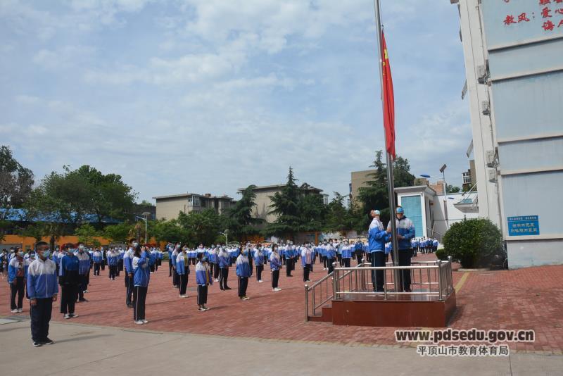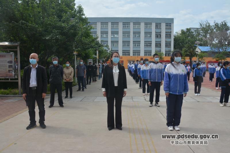 5月11日上午,市第四十中学升旗仪式如期举行。依旧是依托学校广播站,以文字、音频等形式,采取九年级线下七八年级线上相结合的方式,呈现升旗完整流程。嘹亮的国歌声回荡在校园里,线上线下的每一位师生都被浸润其中。