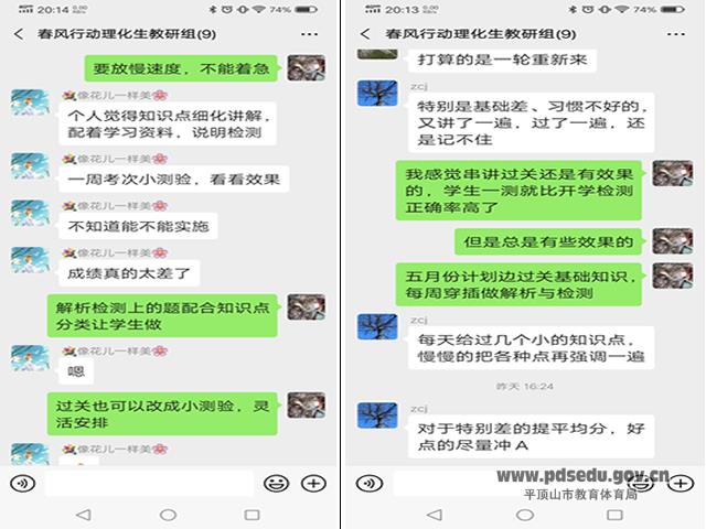 为更好地推动“春风行动”的实施,加强城乡教师之间的沟通交流,发挥骨干教师示范、引领、带动作用, 2020年5月11日下午,在名师工作室主持人高亚丽老师的带领下,市十三中化学教研组和鲁山瓦屋中学化学组围绕2020年中招第一次调研测试展开了交流,此次交流主要对网课效果进行了分析与反思,并对接下来的教学安排进行讨论。