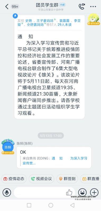 为深入学习贯彻习近平总书记关于统筹推进疫情防控和经济社会发展工作的重要论述,省委宣传部、河南广播电视台联合制作了6集大型电视政论片《雄关》。市四十四中高度重视,积极组织学生及时学习观看,把观看《雄关》作为“把灾难当教材,与祖国共成长”主题教育活动的重要内容,作为学校思想政治教育的现实教材,通过学习交流、研讨等多种方式,引导学生深刻认识中国共产党领导和中国特色社会主义制度、国家治理体系的强大生命力和显著优越性。
