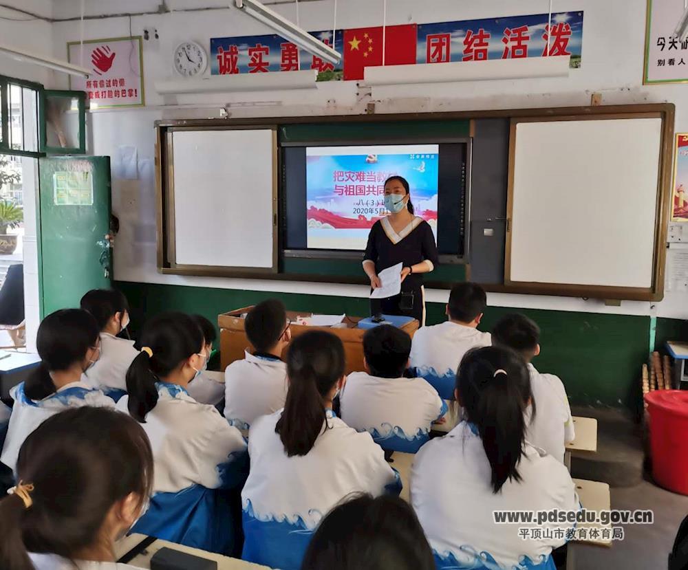 把小我融入大我,把青春献给祖国。5月15日是平顶山市中小学全面复学的第一天。为了深入贯彻市县教体局关于“把灾难当教材 与祖国共成长”主题教育活动文件精神,激发全体师生“把小我融入大我,把青春献给祖国”的思想情怀,鲁山一中利用七八年级新学期集中教育、九年级周末主题班会等时间,组织师生收看新冠肺炎疫情专题片、河南省抗疫宣传纪录片、全国防灾减灾日教育片,开展主题教育励志演讲等多种形式,扎实开展“把灾难当教材 与祖国共成长”主题教育活动。
