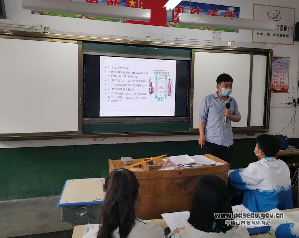 5月15日上午第二节,七八年级举行开学第一课疫情防控专题教育活动。各班组织师生收看新冠肺炎疫情防控知识专题片。班主任结合国内外疫情防控形势,讲解个人防护指南,贯彻学校疫情防控工作实施方案和应急预案。正面引导广大青少年学生落实防疫措施,消除恐惧焦虑心理,增强同保平安共抗疫情的必胜信心,提高新冠病毒的自我防护能力。
