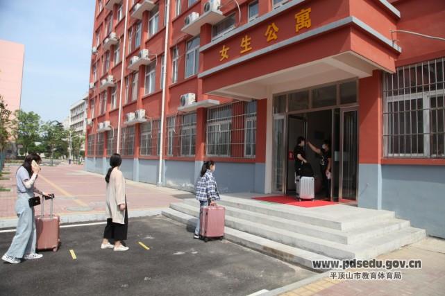 在市委、市政府和市教体局统筹安排下,同学们终于结束了这个漫长的“寒假”,顺利返校复学。一大早,校领导班子分成两组,分别到东、西校区指挥迎接学生工作。公安干警、行政值班人员在校门外负责维持秩序,学生科工作人员负责测量体温,保卫科工作人员负责安全检查,班主任负责验收健康资料、信息登记,宿舍管理员按照上级要求每6人一间安排住宿。同学们按规定时间(二年级、三年级上午,一年级下午)陆续返校,他们听从指挥,间隔1米排队等候,先后经过测量体温、消毒、安检、信息登记、上交健康资料、住宿等程序进入校园。经过一天紧张的工作,学校顺利完成全体师生返校工作。