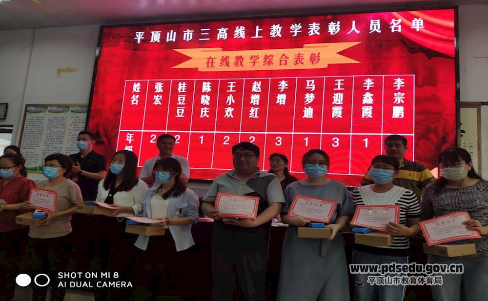 最后,学校对疫情期间线上教学工作表现突出的教师进行了表彰。希望全体教师在以后的线下教学过程中能充分利用信息技术手段,有效提高教学成绩。