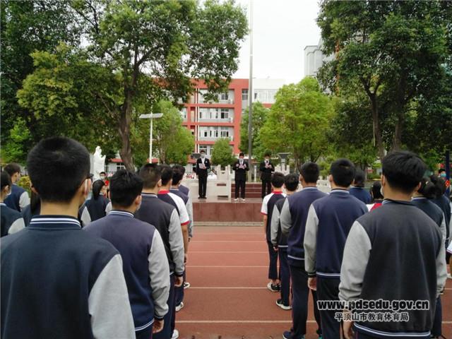 副校长徐劲松在升旗仪式上对学生殷殷嘱托:“一要疫情防控常抓不懈。二要严格落实诚信卡制度,对违纪的学生要依照校规校纪进行处理。三要做好日常卫生工作。