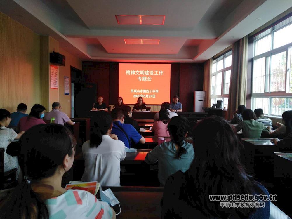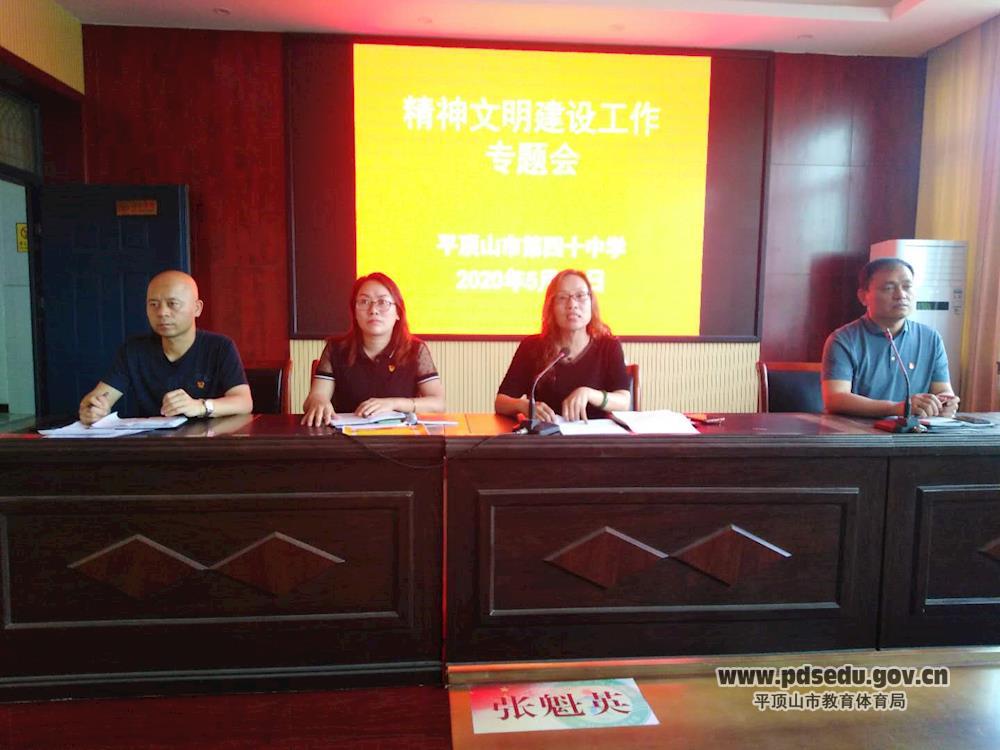 5月28日下午,市四十中2020年度精神文明建设工作专题会议在学校明道楼二楼报告厅召开。校领导班子成员、全体教职工参加会议,会议对四十中2020年度的精神文明建设工作进行了安排和部署。会议由副校长李学功主持。