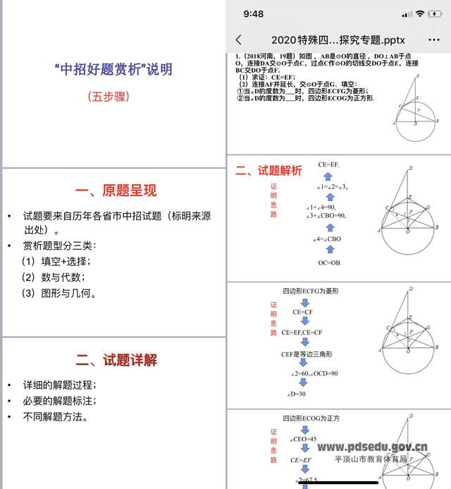 在居家上网课两三个月后,初中生分批返校复学后.复学后,数学课怎么上?复习课该如何设计?老师和学生如何重新审视手中的课本?九年级毕业班的教学时间紧迫,复习书上的经典题应该怎样教等等,这些问题是每个学校师生所要面对的最直接的问题,席明焕工作室提前筹划,积极组织成员进行研讨。工作室将骨干教师进行合理分组,每组负责钻研一个话题,并形成小组成果,以“教材例题赏析”、“中招好题赏析”、“专题复习案设计”等形式,开展分项深度钻研,最后各小组汇总成果,分享成果。通过研讨和着手认真完成,骨干老师们不仅自己在分析钻研能力上得到提升,也为各自所在学校的复习课提供了思路。